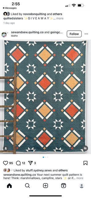 Deb also made this 3 yard quilt. She won a contest at the local quilt store, she was able to get this quilt quilted for free! She added rick rack for a fun touch to the binding.