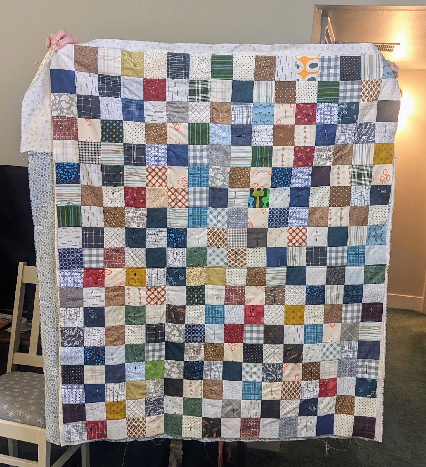 This is a quilt top Diane made. It is her "manly" quilt and made all from her stash. No fabrics were